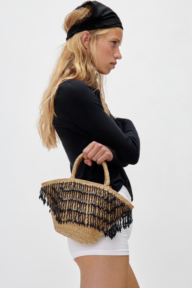 1. ZARA Beaded Fringing Mini Handbag