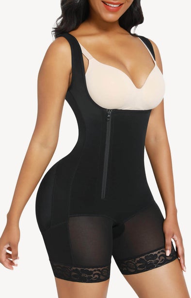 CoreSculpt Mid-Thigh Extended Busty Reshaper is a mid-thigh exposed breast reshaper.